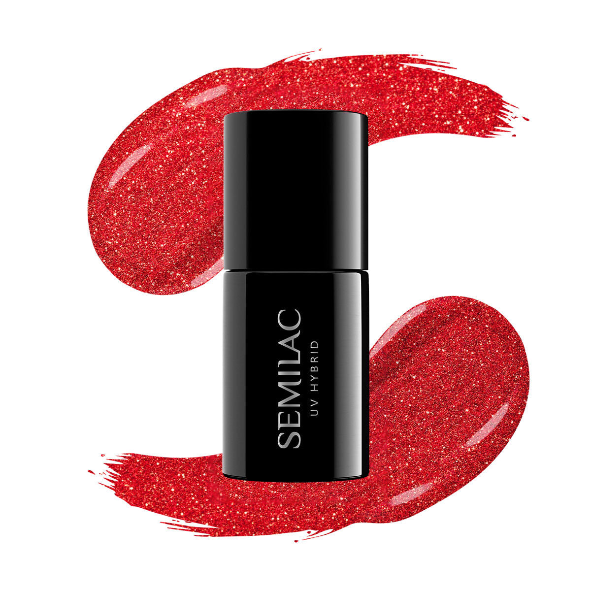 Apply a thin layer of the nail polish on a cured layer of a hybrid base coat and then cure it under a UV LED lamp. Do not apply the product directly on the nail plate. You can apply two layers of the nail polish to achieve the desired effect. Finish off your manicure by applying and curing Semilac Top.