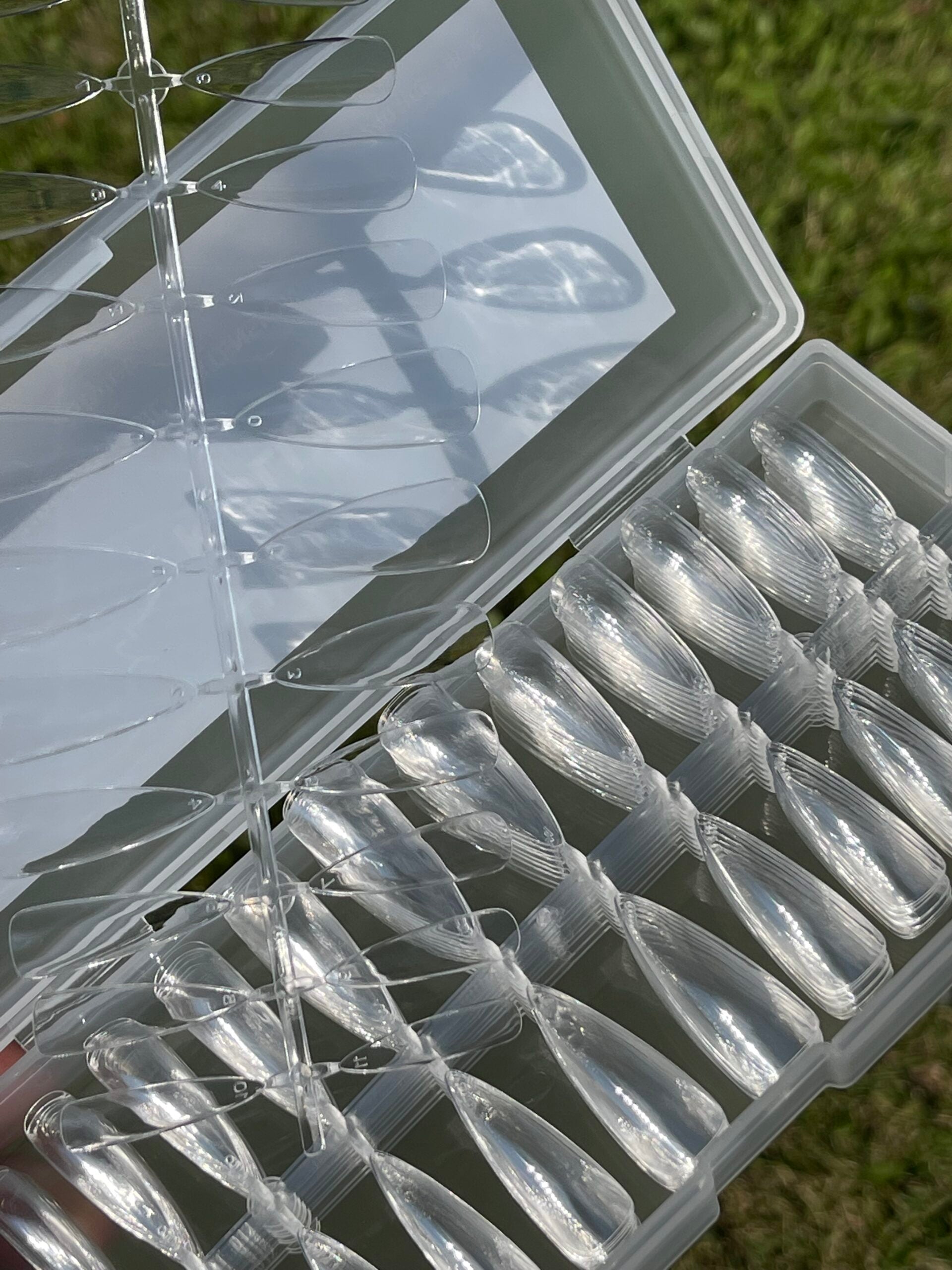 The tips are made of gel and are amenable to sawdust. They are strong, but flexible, which allows you to attach the tips to the nails without additional effort.
