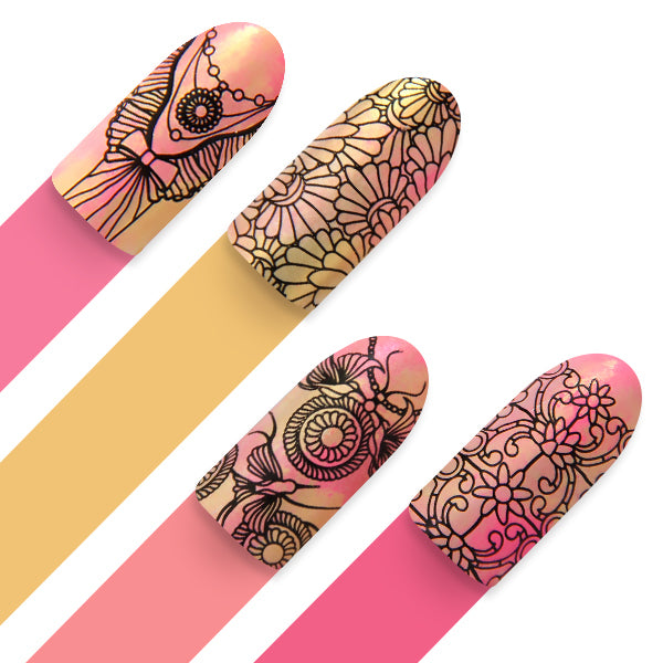 With the help of these professional quality, large-sized stamping plates, you can create beautiful, special nails in minutes, either at home or even in salons! Easy usage, guaranteed success!