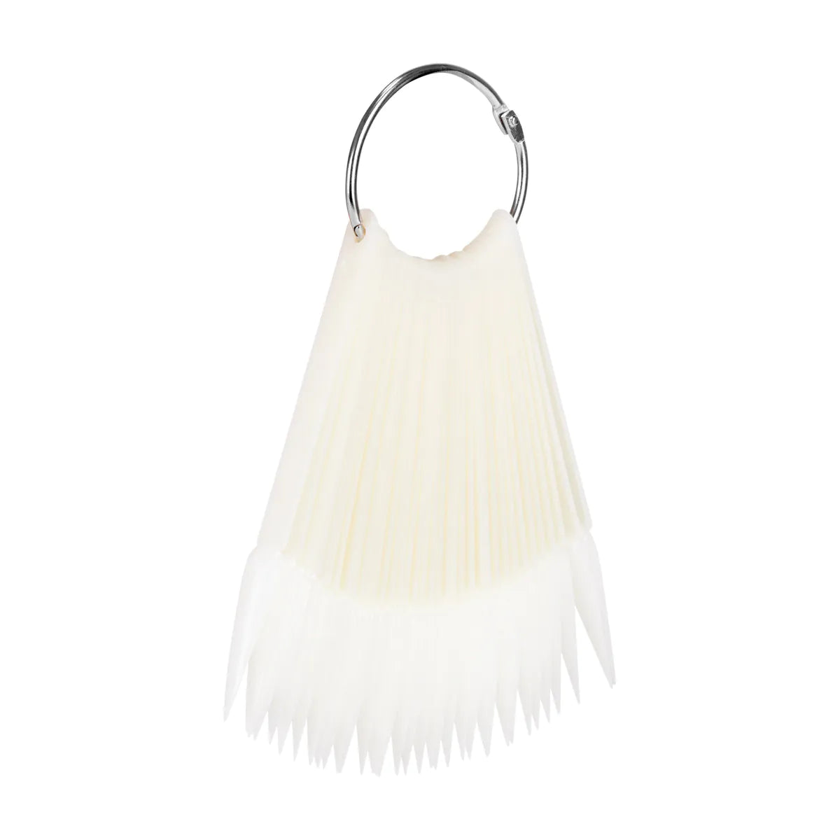 The nail stencil in a milky color allows you to aesthetically present all colors of classic and hybrid varnishes or gels. It consists of 50 individual tips with a pointed shape. It is fastened with a practical, detachable wheel, which makes it easy to store the whole thing. Each tip is made of durable plastic.