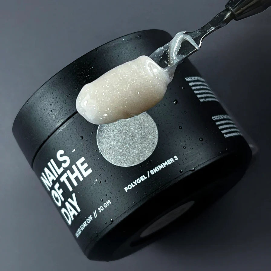 Nailsoftheday Poly Gel is a hybrid of acrylic and gel. Nailsoftheday poly-gel with shimmer has a micro-granular structure.