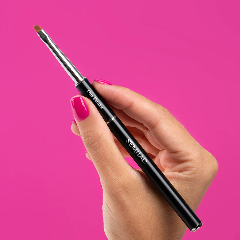 The One Stroke nail art brush is a brush with flat, slanted synthetic bristles which is perfect for advanced nail art techniques like One Stroke. An easy-to-use cap protects the fibres from damage and makes it easy to store the brush. It has the highest quality synthetic fibres which keep their structure during use.