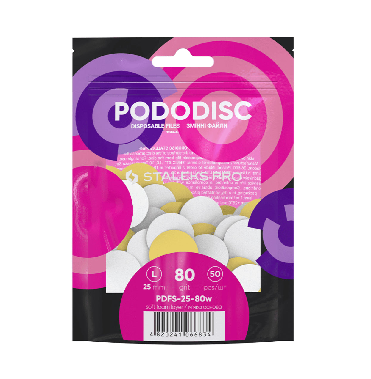White refill pads for pedicure disc on soft base Staleks Pro L, 80 grit (50 pc)